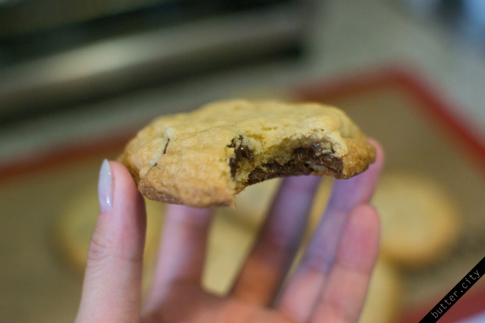 DSC_6470I love single bowl recipes. I love moist, chewy cookies. I love chocolate. Here is the chocolate chip recipe that you’ve been waiting for all your life. It doesn’t care if your butter is softened or melted. It doesn’t even care if your egg is room temperature or straight out of the fridge. All it cares about is being eaten within 24 hours, which is really not an issue at all.