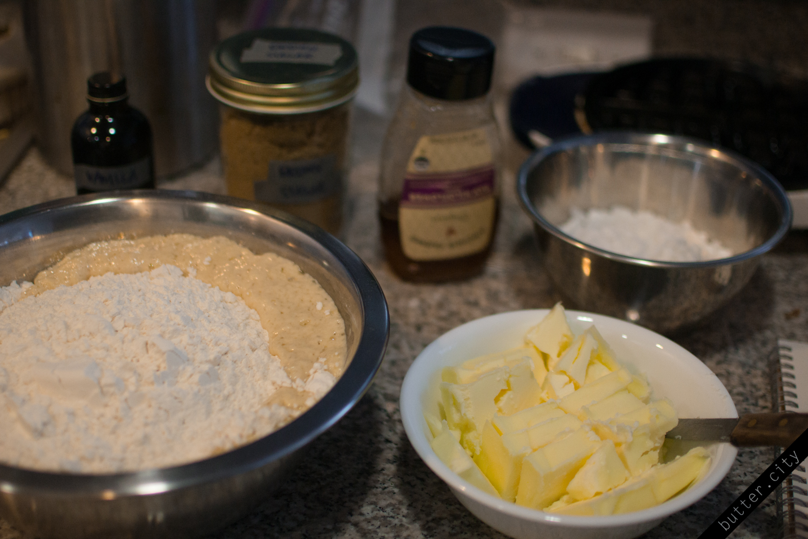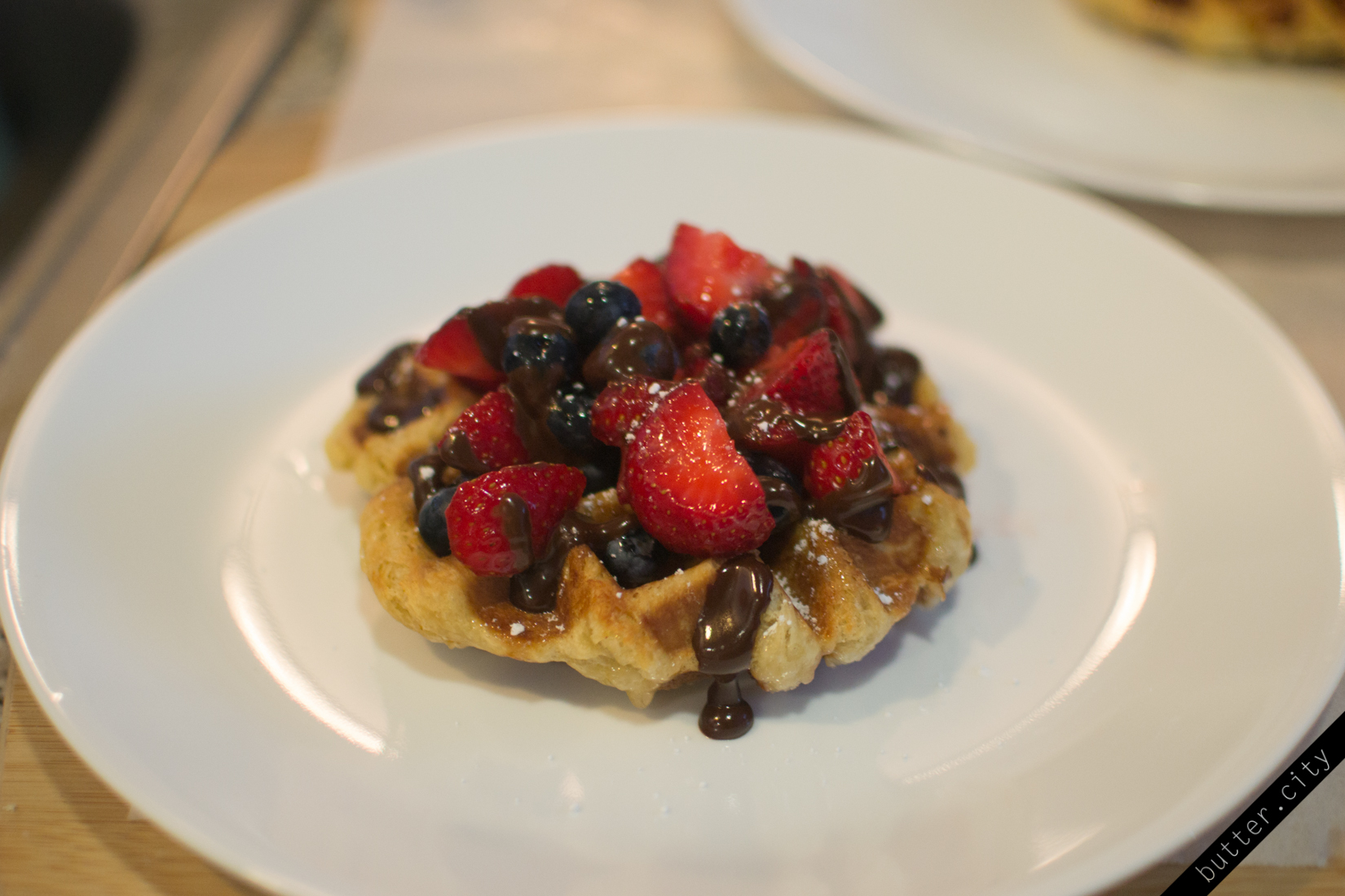 These liege waffles were a huge pain in the butt. I had to buy special ingredients (Belgian pearl sugar), it took forever (3 days?) and to be honest I don’t think they came out that well. During our Portland trip a few months ago, we went to Off the Waffle for our last breakfast and damnnnn that waffle was amazing – I was inspired. But alas, my first attempt at liege waffles yielded something much denser and all-around not as mouth watering. Yes, they were still okay – it’s hard for sugared bread to be disliked, but with Off the Waffle fresh in my mind… I just couldn’t love these.