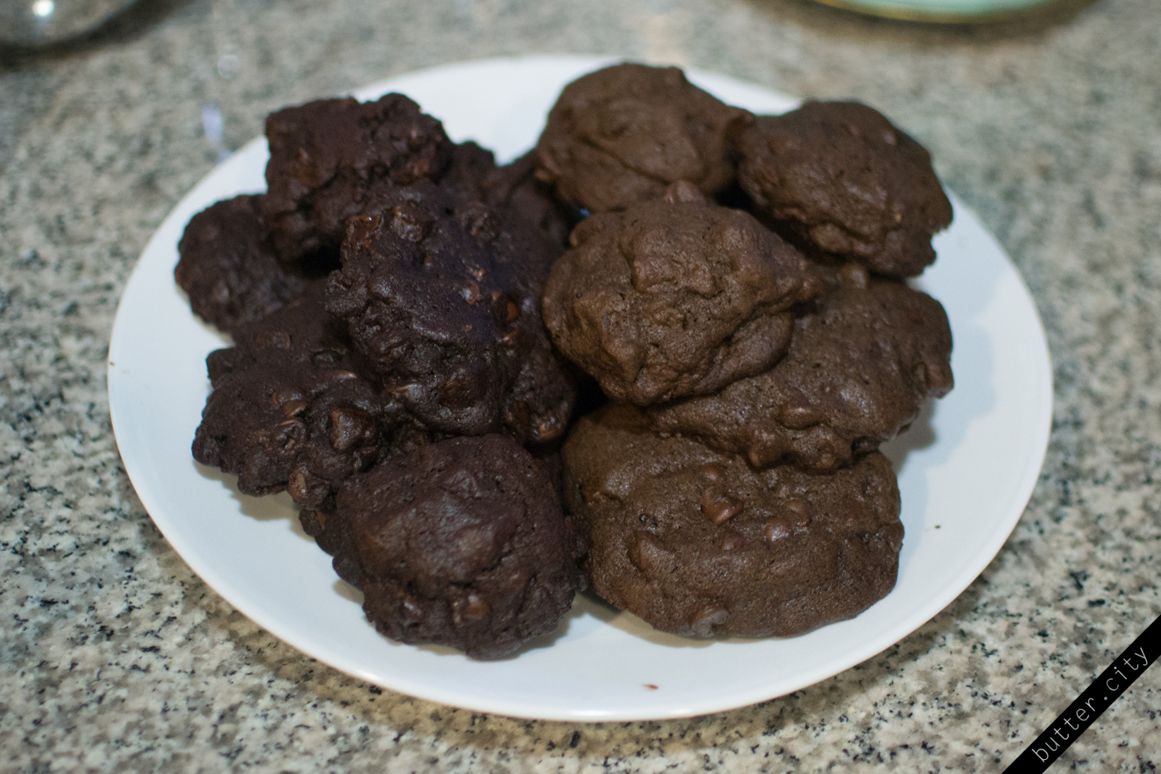 In the picture above, the darker cookies on the left used Valrhona cocoa powder, and the brown cookies on the right used Ghrirardelli cocoa powder. In the end, there were mixed taste preferences. The Valrhona cookies had more depth of cocoa and coffee flavor, the Ghirardelli cookies seemed a bit more moist. Results were inconclusive. I shall test again and report back.