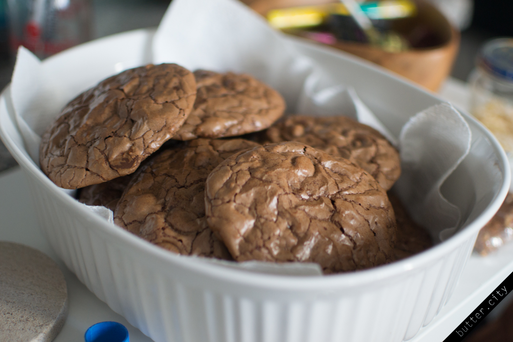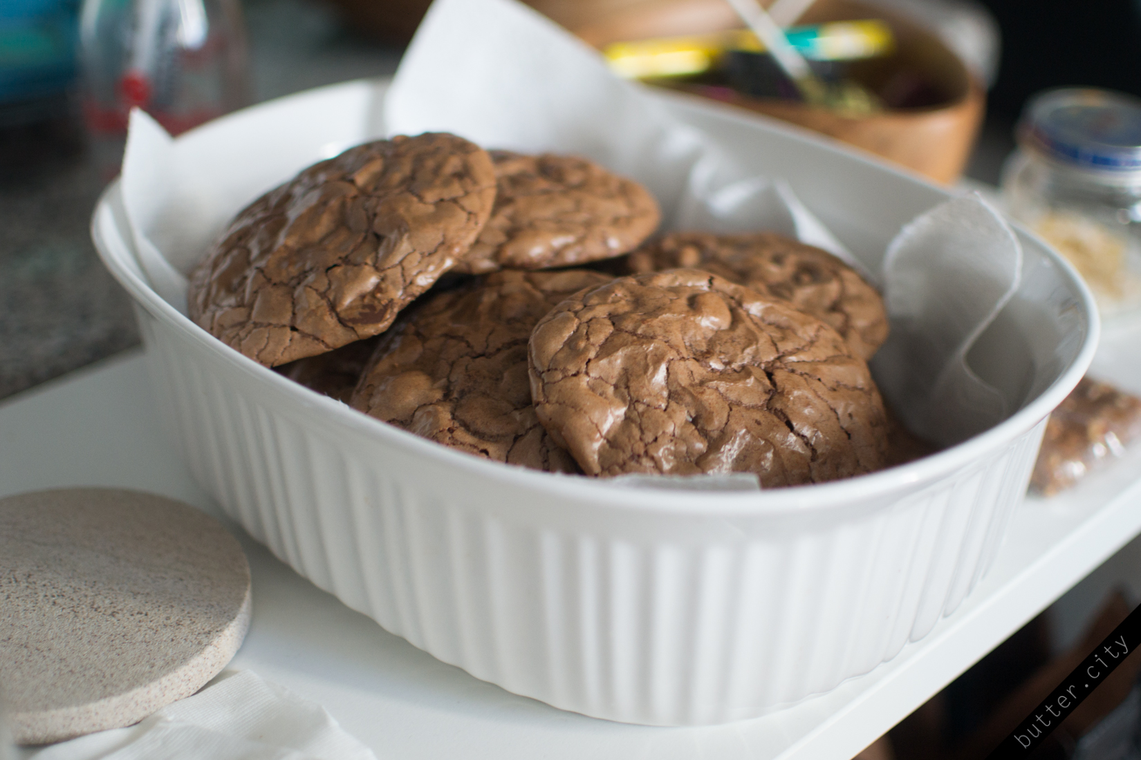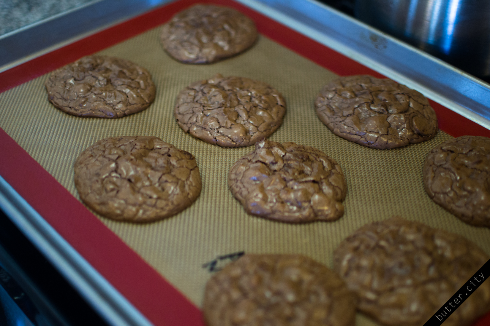 I’ve been to Seattle countless times, and every time I’m there I take multiple trips to Tom Douglas’ Dahlia Bakery. In the winter, they have these bomb ass chewy ginger cookies that I inhale, but for all other months of the year they have these truffle cookies that I savor. They’ve got a texture similar to brownie edges which is legitimately everyone’s favorite part. I’ve followed his published recipe a handful of times and it’s pretty finnicky, so here it is with my notes.