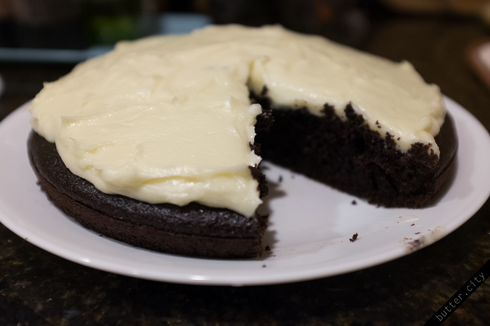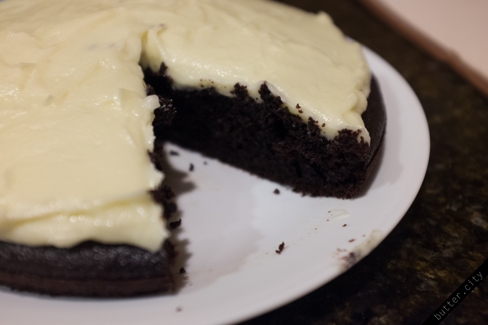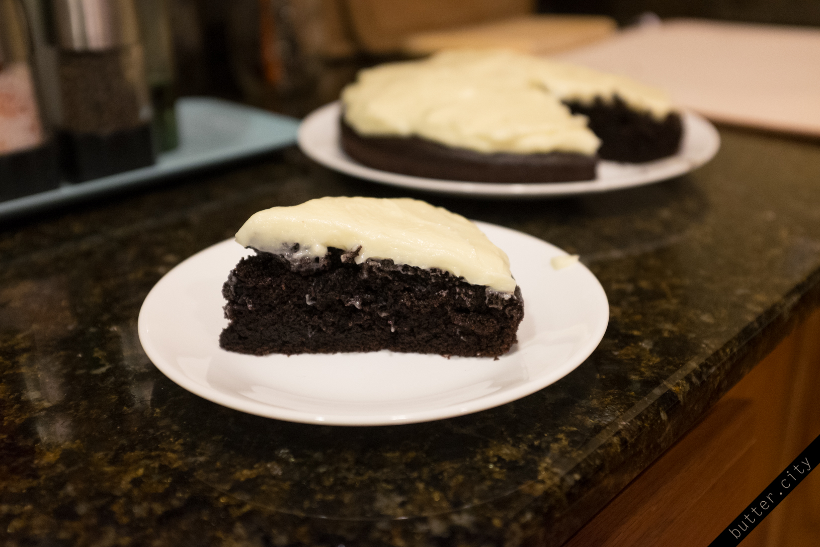 I was telling my coworker about how red velvet cake is really just chocolate cake plus a bottle of red food coloring, and he said, “You know, the real reason why people go crazy over red velvet cake is the cream cheese frosting.” And I said, “Well then, why don’t I just make a normal chocolate cake with cream cheese frosting? Ok, I’ll do it.” And thus, black velvet cake is born. 6/21: This post has been updated to be assembly instructions instead of baking instructions 😉