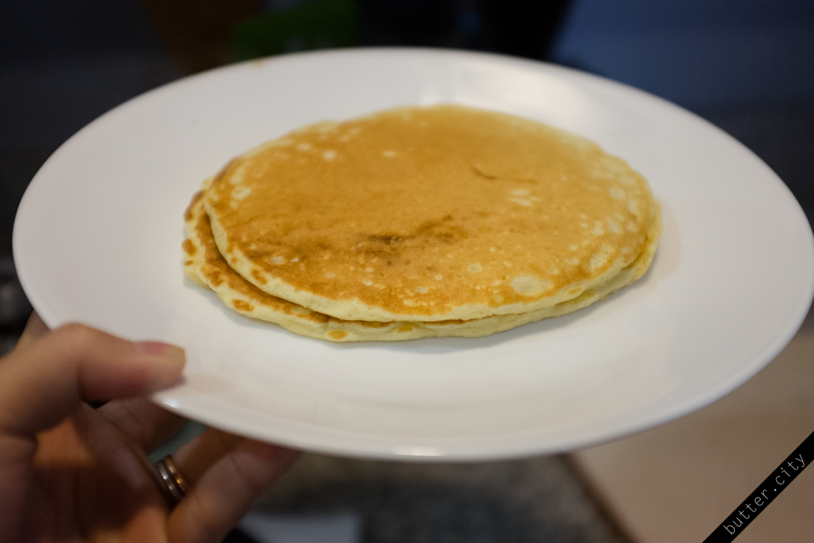 It’s been awhile since I had pancakes… and I somehow lost my old trusted recipe. So this time I decided to trust the 7000 reviews on this Allrecipes post. With a few lazy modifications. Also these are the most boring pictures ever. But nobody cares when you’re eating pancakes on a weekend morning 🙂