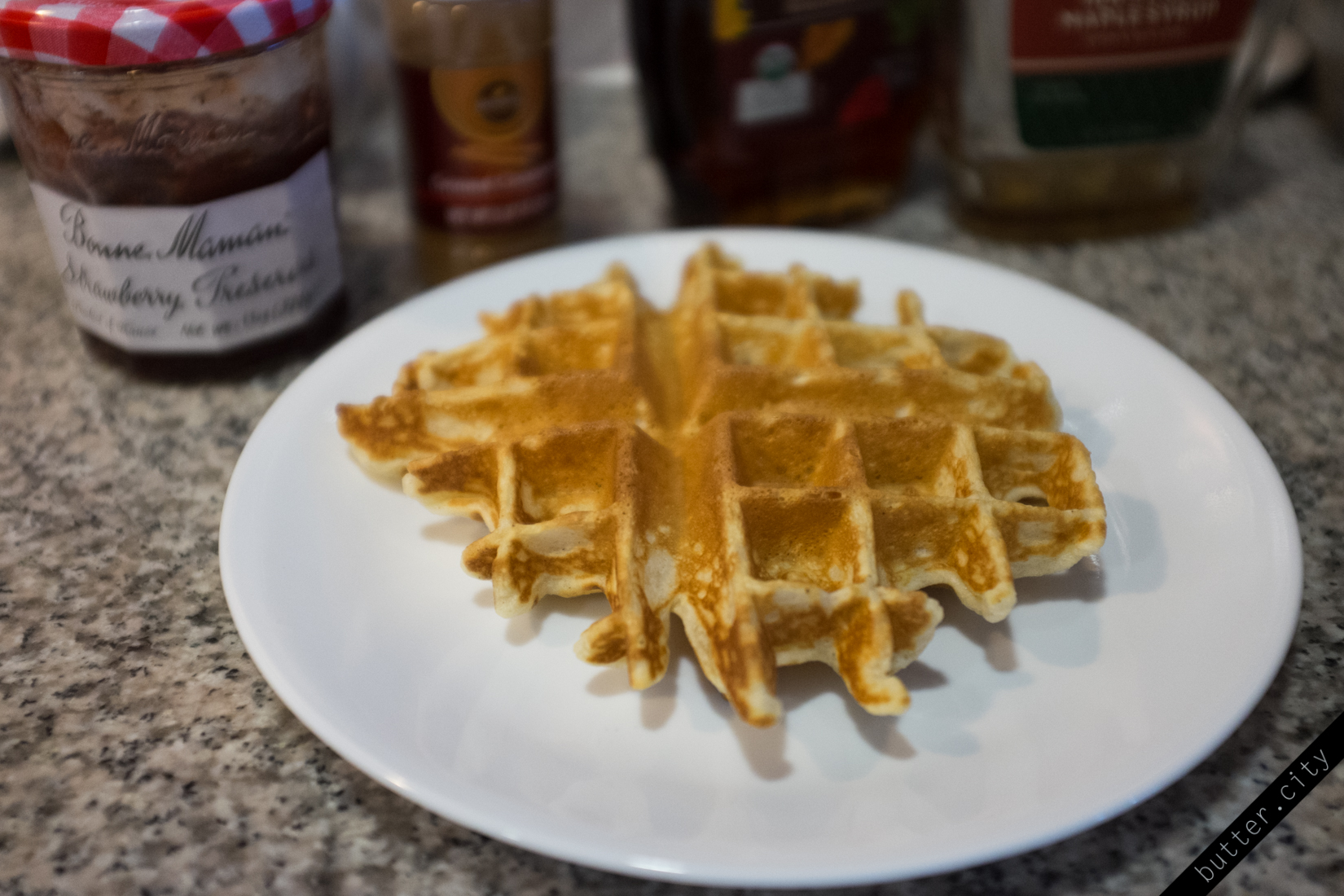 Waffles! But first, check that your baking powder hasn’t expired! Typically baking powder has a shelf life of about a year, after which it’s time to get a new can. Apparently baking soda is much more shelf stable, but probably good to check every now and then. Ok, then when you’re ready…