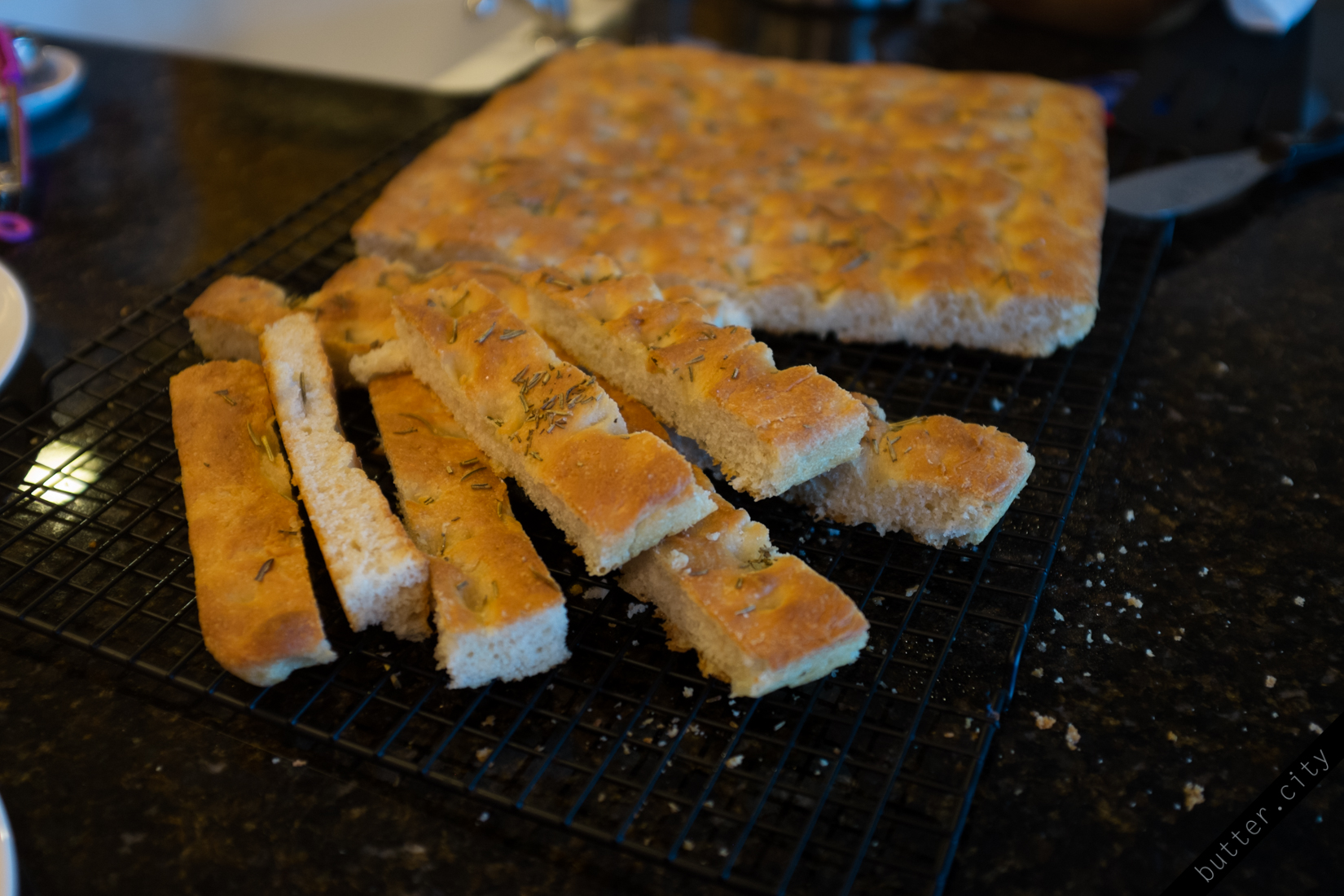 Alas, I am no longer afraid of yeast! I followed this rosemary foccacia recipe to make a side for a dinner party, and it was delicious. Flavorful and oily, though I do prefer my breads to be a bit more on the chewier side. I will be adding this bread recipe to my repertoire, but probably halving or even quartering the recipe since it was enough to feed a village (8-10) and you know what happens when there’s excess fresh bread around the house…