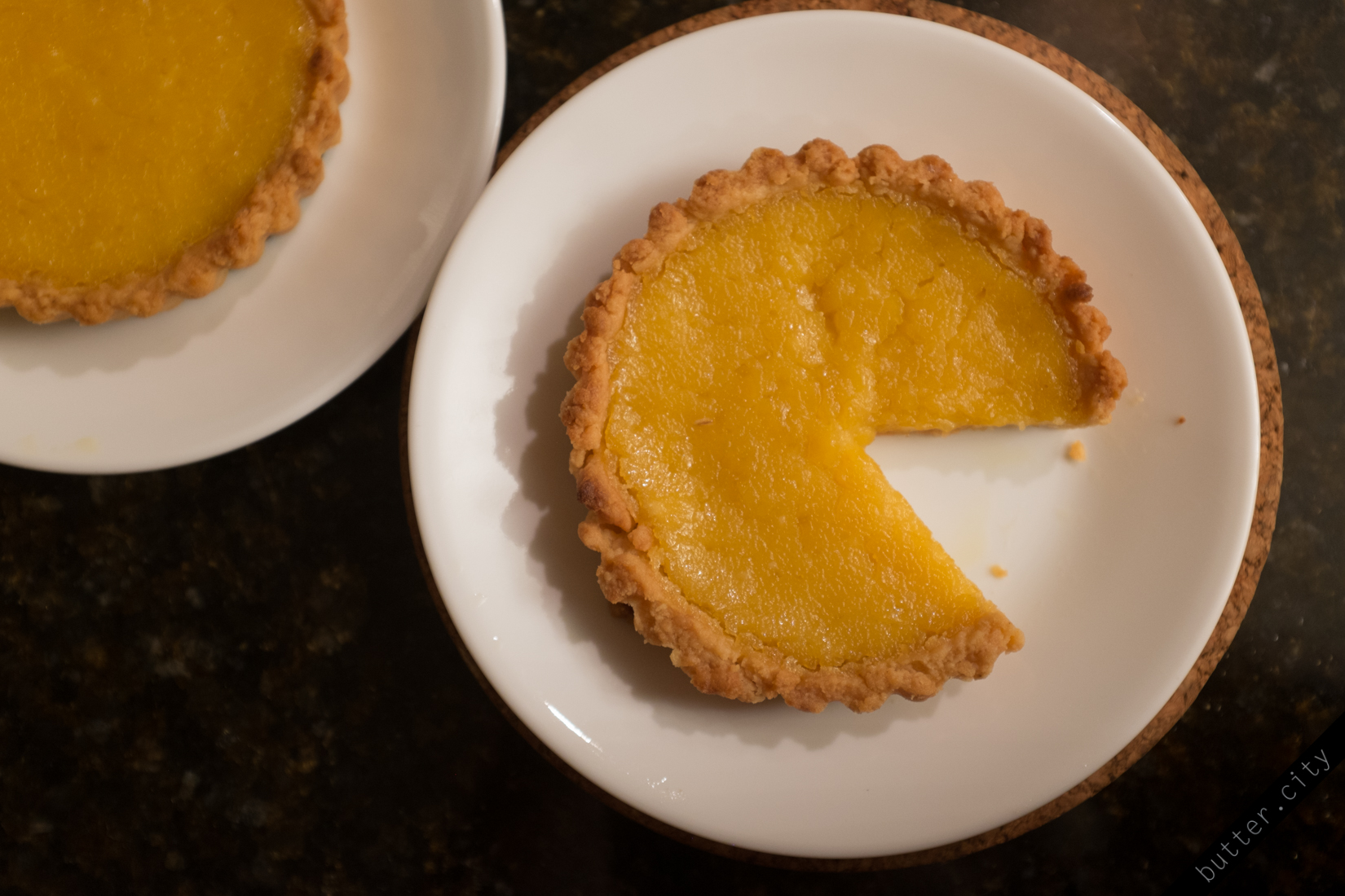 I want to make macarons again, so I dug around for a recipe that would get me a bunch of extra egg whites. Enter: David Lebovitz’ lemon tarts. Note that these are definitely not lemon bars, which have a sticker, stiffer texture, but more like tarts with a soft, smooth filling.