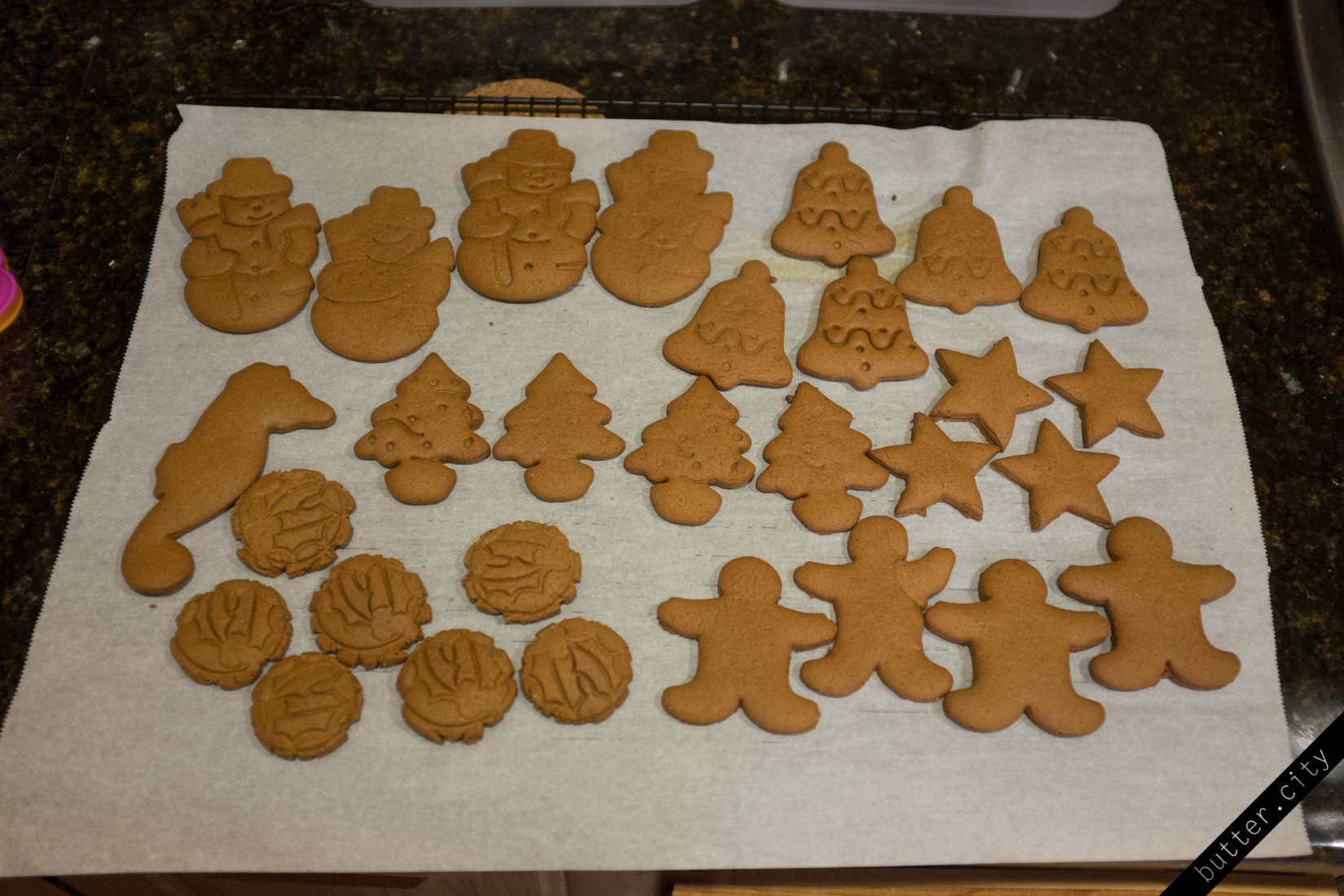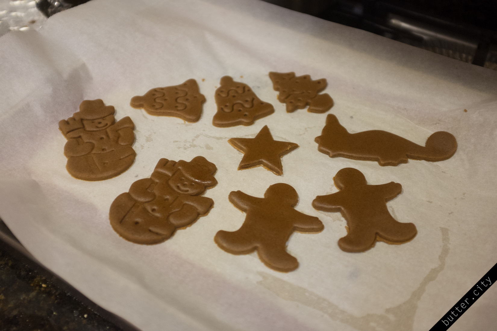 Ok obviously a few weeks late, but this can still be a reference for next year, right? ‘Tis the season to-eat-cookies, fa-la-la-la-la, la-la, la-la! We had a tradition of making unfrosted gingerbread cookies when I was younger; the taste of these is very similar, but without the need to chill the dough. Much more convenient for sure. This dough work probably work well for a house too, since it doesn’t rise much at all. For a house, I’d recommend rolling dough out a bit thinner for easier handling.