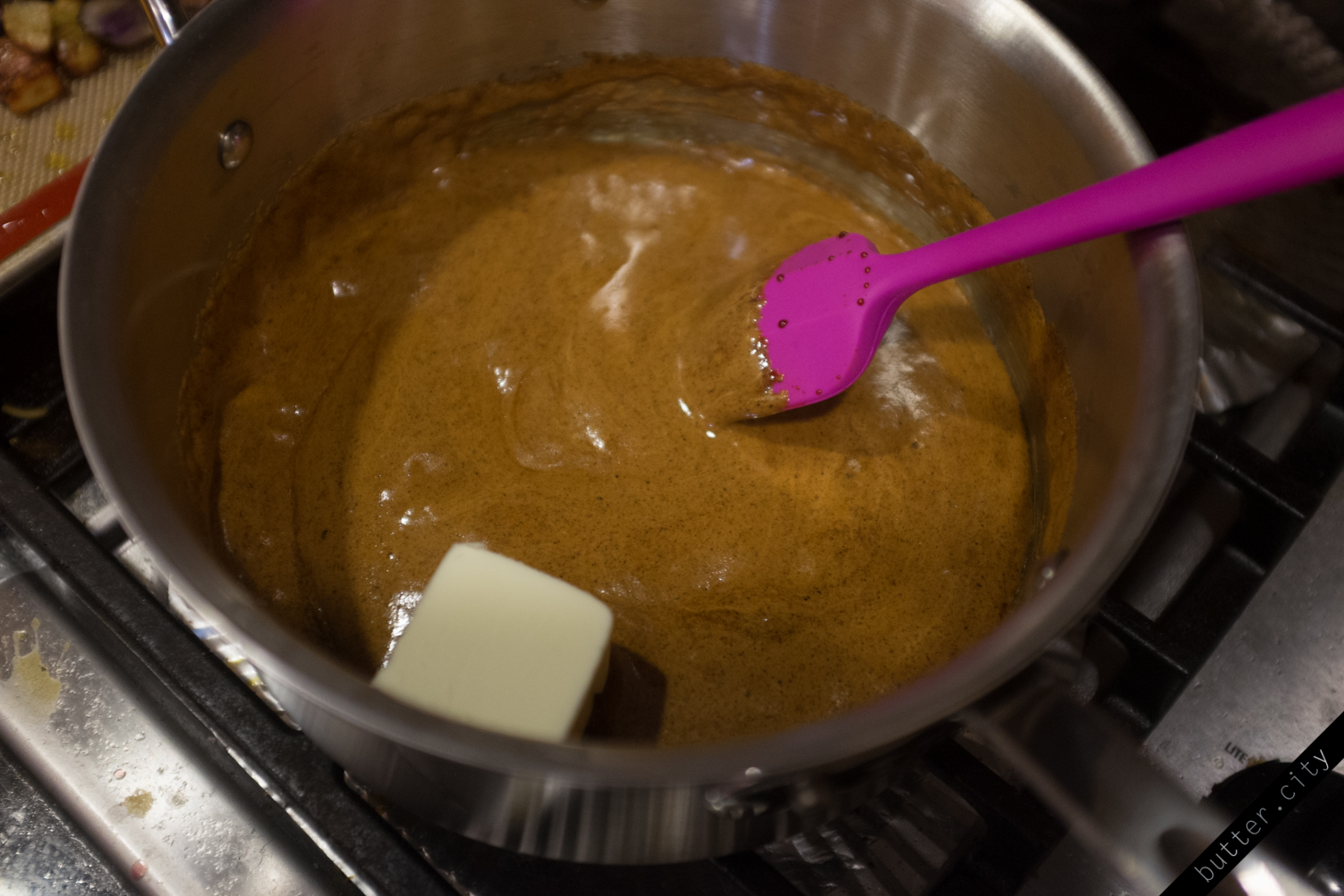 Lightly flour a silicone baking mat or parchment paper. Pour dough out from pot onto working surface. Knead the dough until uniformly covered. Roll out to about 1/4 thick and cut into shapes, removing the “negative” dough for re-kneading and forming later. Cookies need about 1/2 inch space around for a slight spreading while baking.