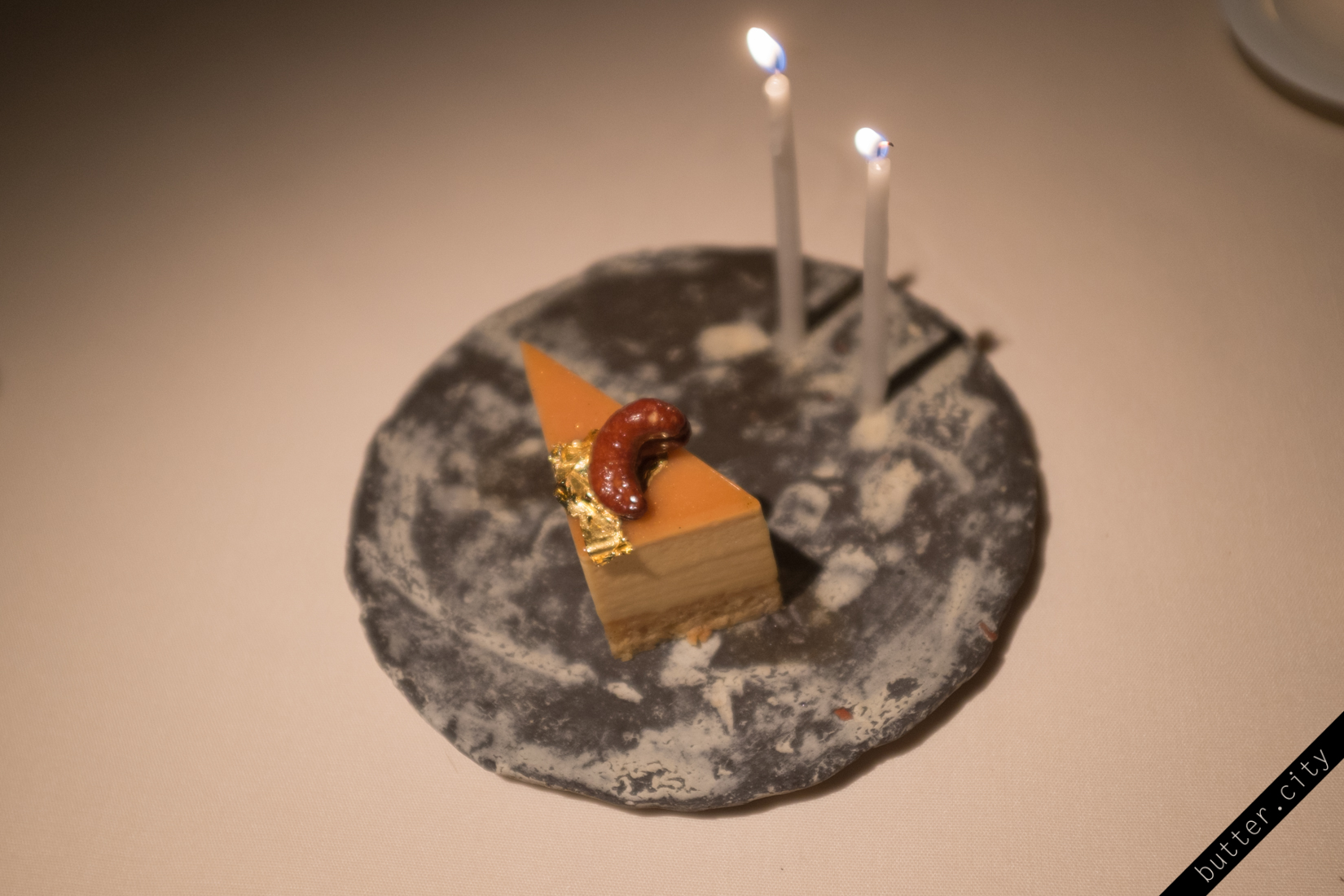 Our birthday cake. A cashew caramel mousse cake, which was really smooth, and of the three desserts that were served together, probably my favorite because I could actually go back to the flavor profile as something comfortable and simple.